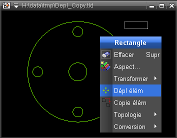 1.Déplacement d'un rectangle en invoquant la fonction Déplace élément depuis le menu contextuel.