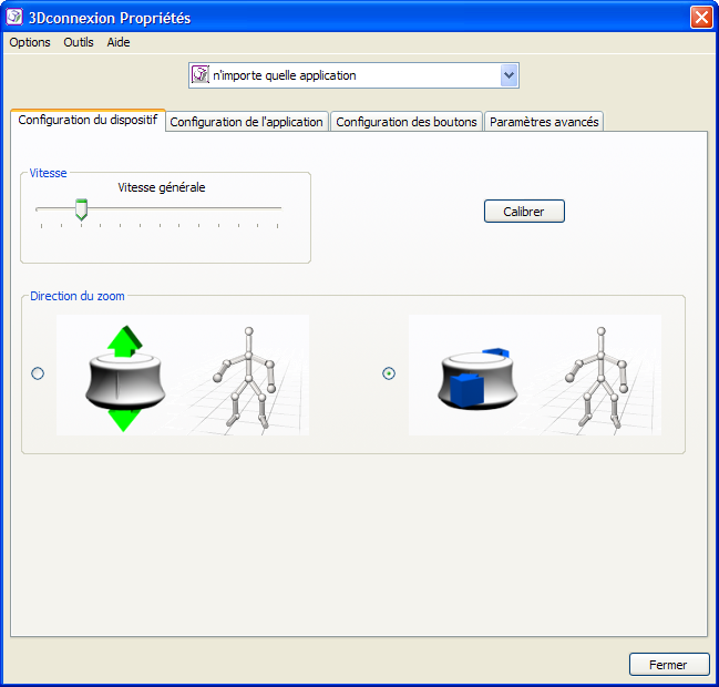 Après l'installation du pilote il est nécessaire de configurer la souris 3d.