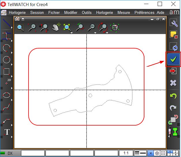 Cette fonction permet d'importer des entités 2D de Tell dans une esquisse via un fichier DXF. Cet outil est optionnel et doit être commandé auprès d'AiM Services.